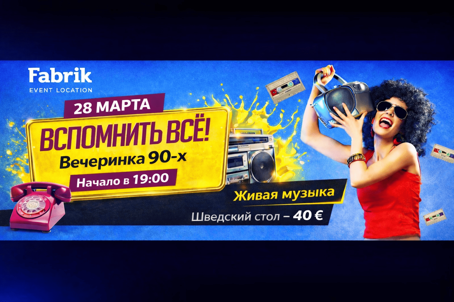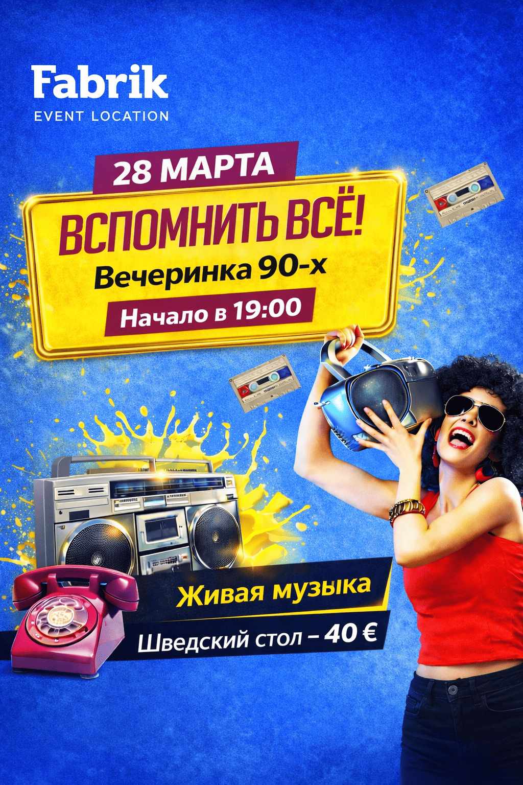 28 марта ресторан FABRIK приглашает вас на вечер «Вспомнить всё 90-е» 💃🕺